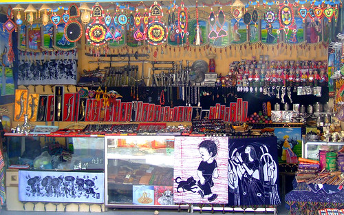 那里的商业街,从本质上说和夫子庙是一样的,只不过那里卖的是各种的藏饰藏服藏刀之类的。而当夫子庙整天不厌其烦地无数便播放心太软、老鼠爱大米、大长今、神话等一系列庙歌的时候,那里也正无数便重复着那里的流行藏歌。